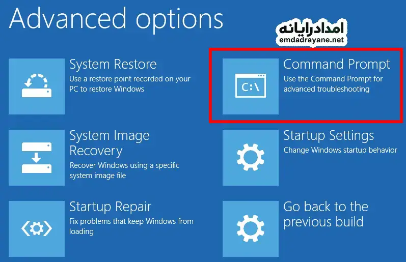 - سیستم وارد محیط بازیابی (آبی رنگ) میشود