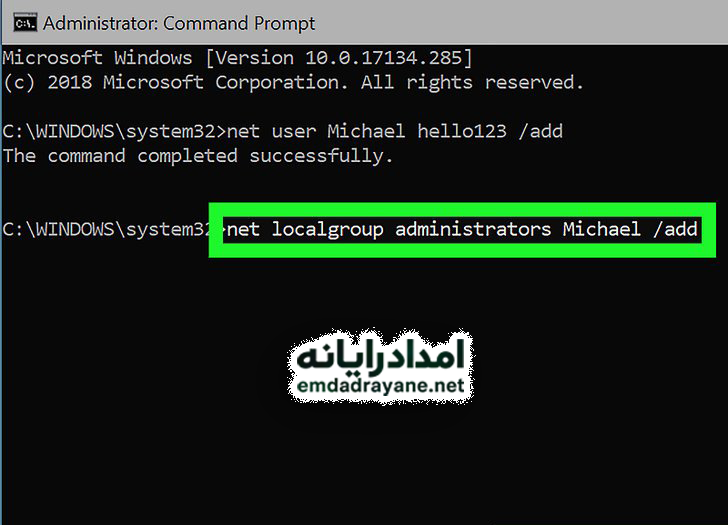 دستور دوم: به کاربر دسترسی ادمین میدهد